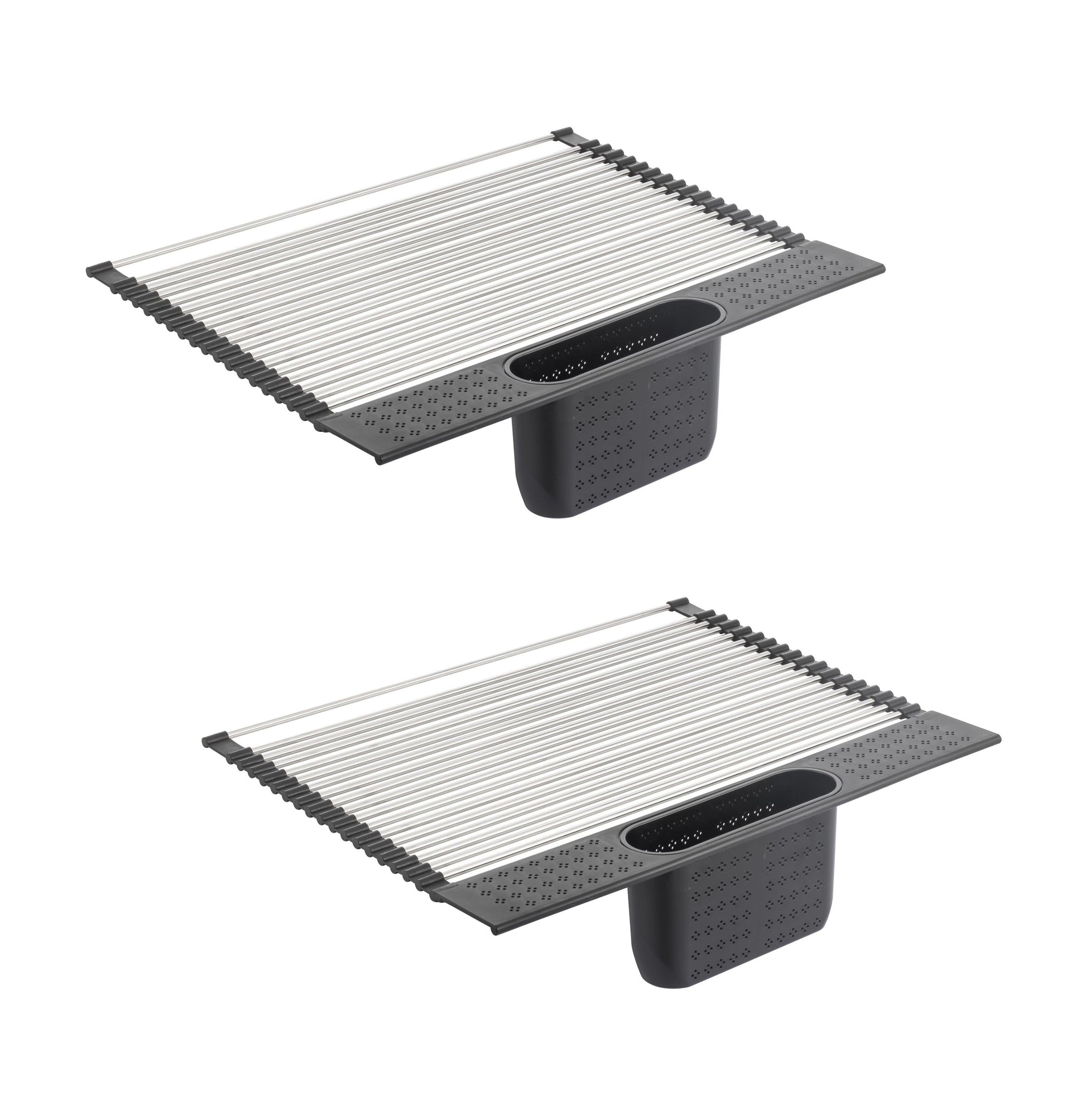 2 Pack Large Stainless Steel Roll Up Dish Drying Rack with Utensil Holder for Home Kitchen