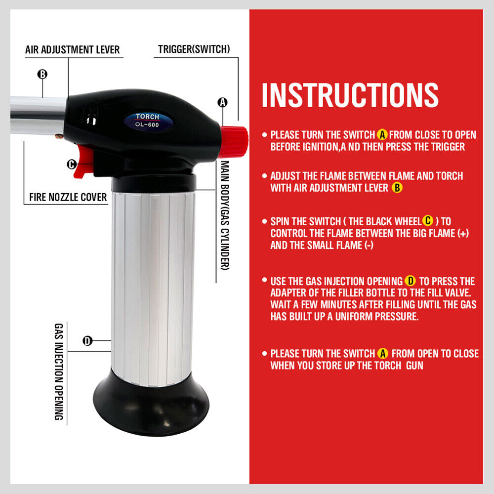 600ML Butane Torch Gas Blow Jet Lighter Refillable Soldering Gun Flame Heat BBQ