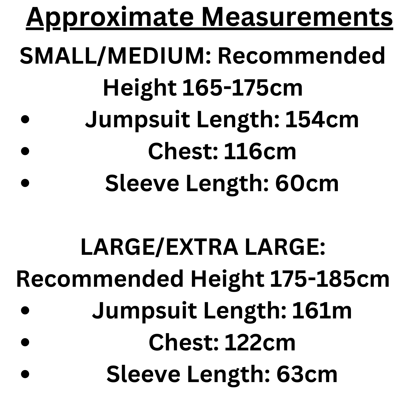 - The jumpsuit has a high neck collar in addition to an attached hood.