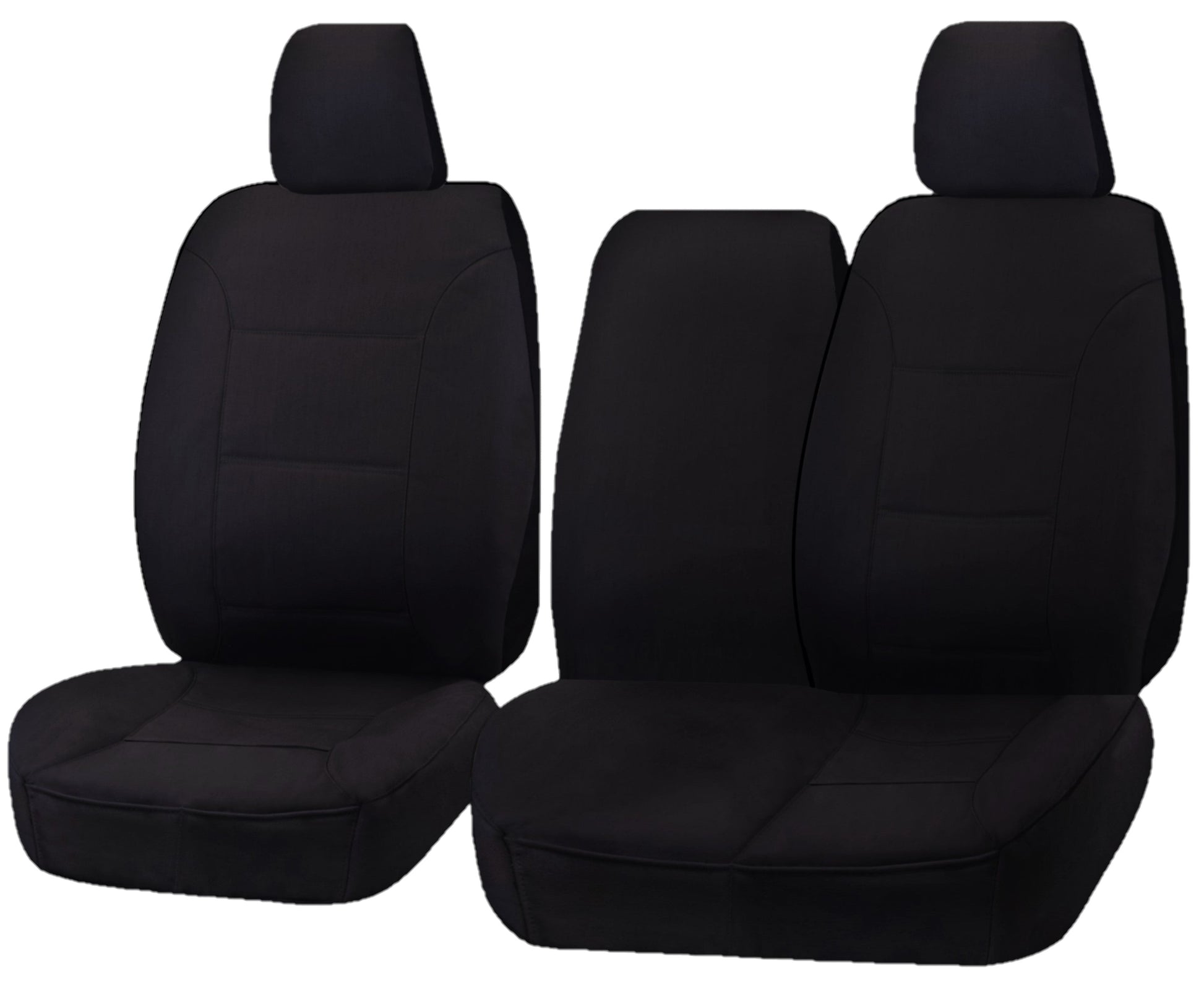 Seat Covers for TOYOTA LANDCRUISER 100 SERIES 1998 - 2015 STANDARD HZJ-FZJ105R FRONT BUCKET + _ BENCH WITH FOLD DOWN ARMREST/CUP HOLDER BLACK CHALLENGER