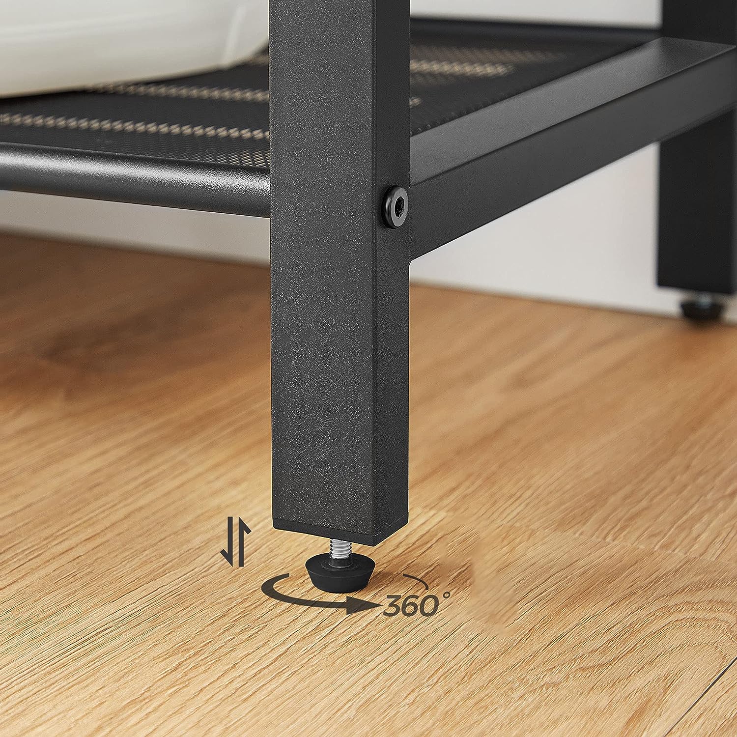 - This shoe rack is the perfect way to keep your home organized and looking great. With adjustable feet, it can easily be leveled on any surface - even uneven floors - and will pass a spirit level test with ease. Plus, it won't scratch your tiles, parquet flooring, or wood floors.
