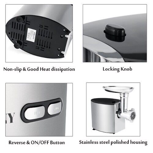 The high performance meat grinder is for professional use, it can be used in large kitchens, butcher shops or in the catering sector. Made of stainless steel, for eternity and will process your meat quickly and reliably. The meat grinder is designed for long-term use in high-performance applications. Easy maintenance and time-saving versatility