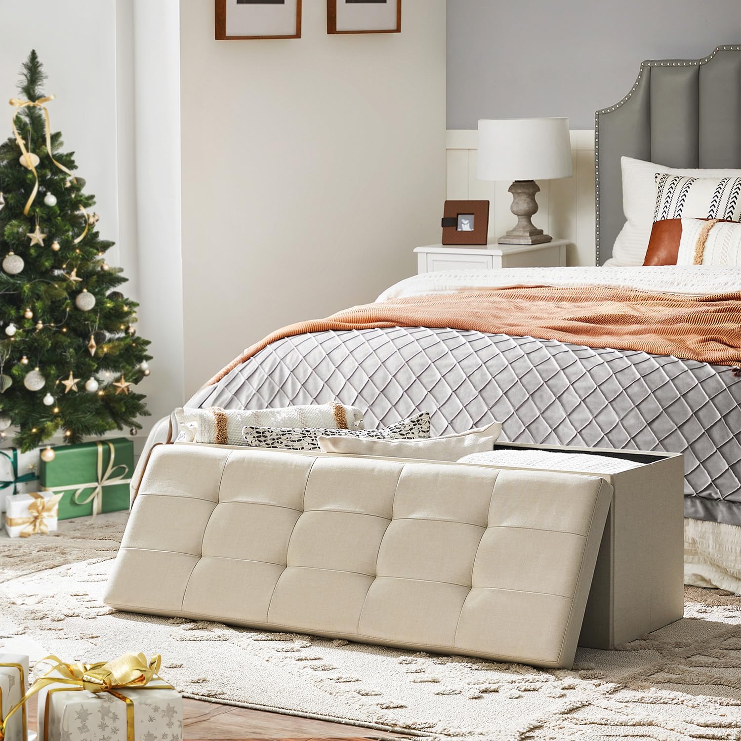 SONGMICS 109cm Folding Storage Ottoman Bench Beige LSF77BE