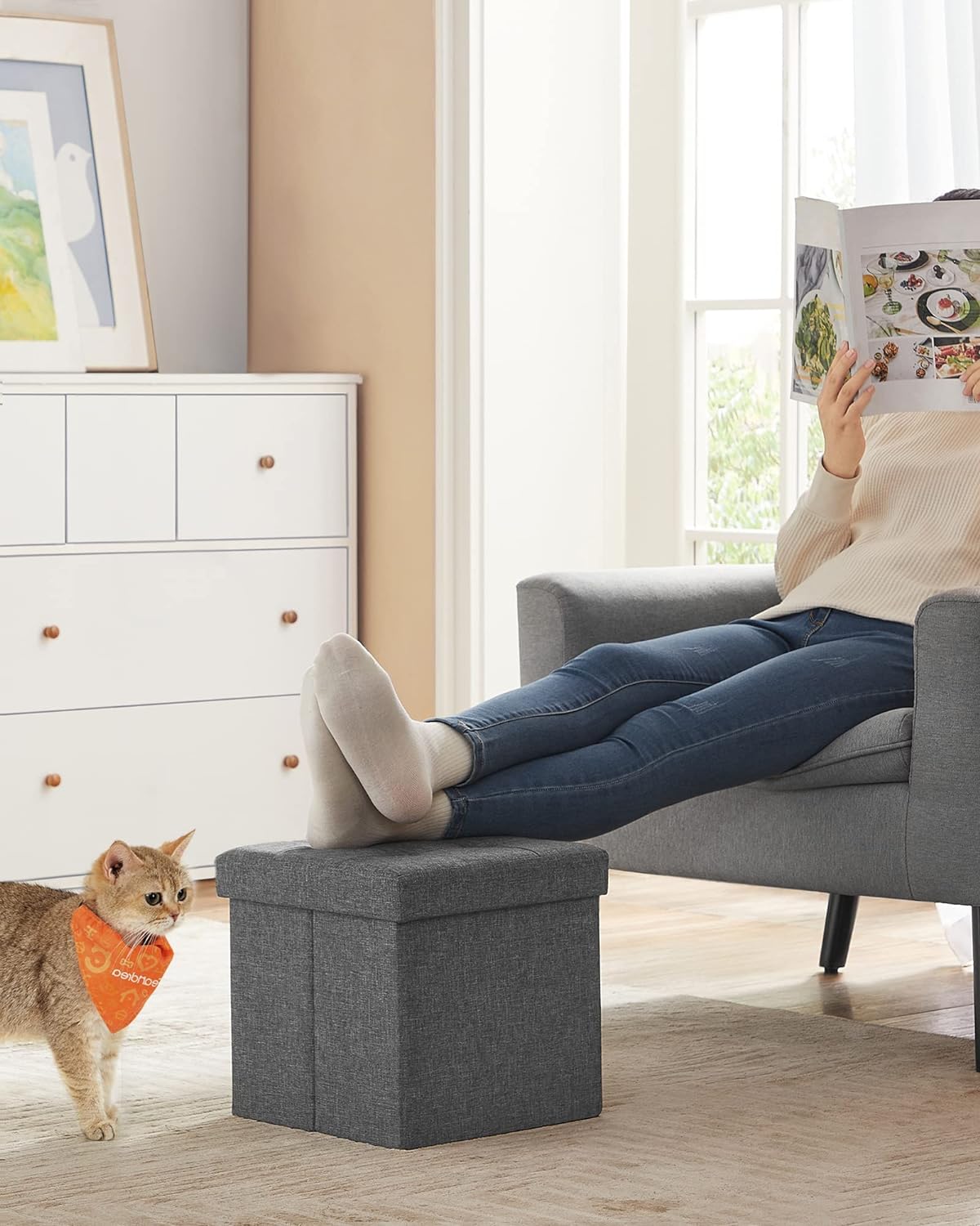 SONGMICS 30cm Folding Storage Ottoman Foot Rest Stool with Storage Dark Grey