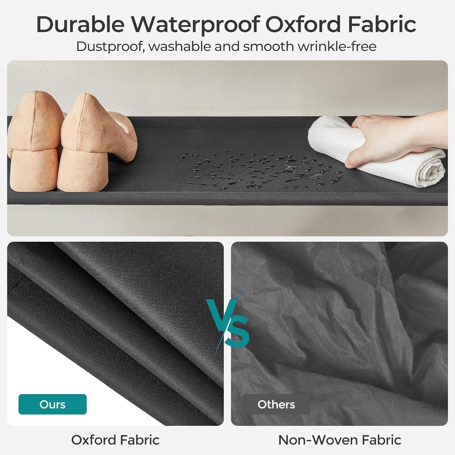 High-Quality Materials & Long Lifespan: The shoe organizer is made of thickened metal tubes and dustproof waterproof oxford fabric (Not a Wooden Top), square side frame makes the shoe shelf stronger, ensuring high stability for easy organization and storage. Each shelf layer holds up to 30 lb. SONGMICS closet shoe rack maintains a nice and chic while enhancing the service life, great ideal for keeping your entryway, wardrobe, dormitory, patio, mudroom and garage away from mess