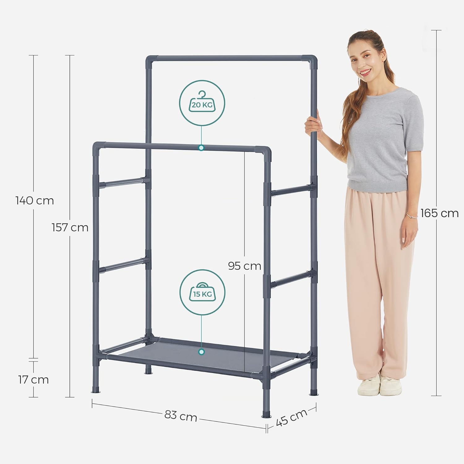 SONGMICS Metal Clothes Rack with 2 Rails Grey RDR001G02