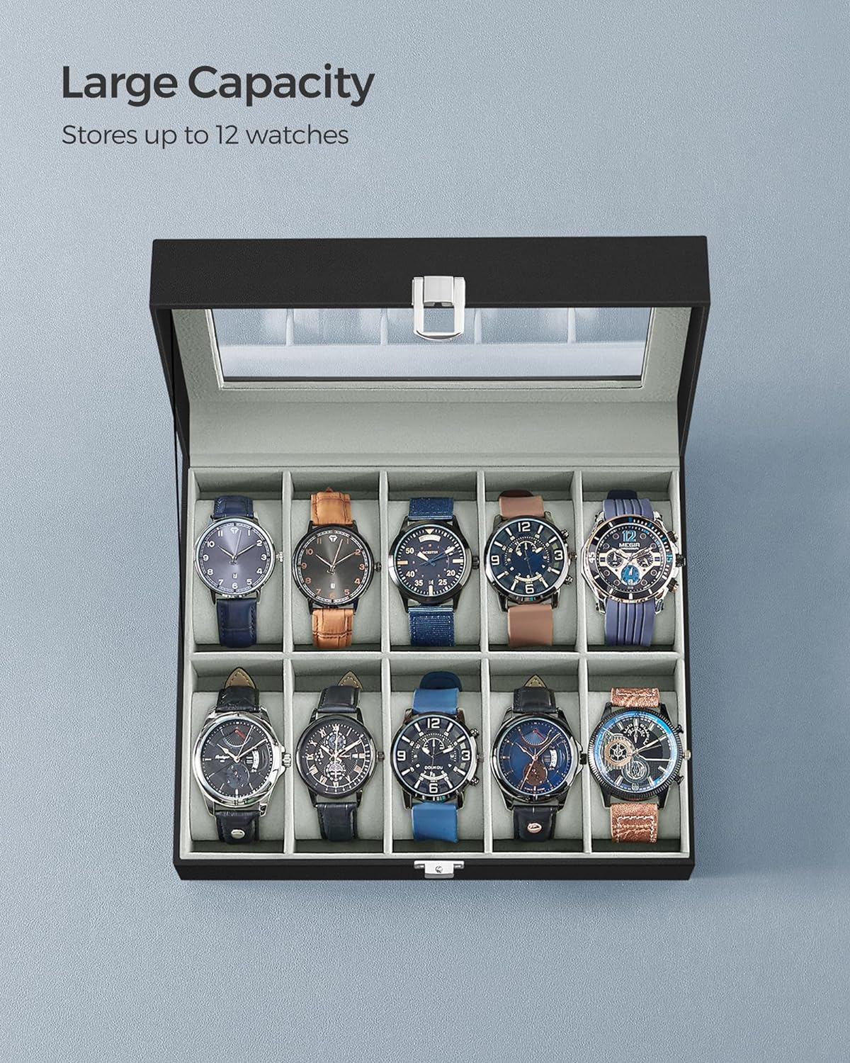 Clear Glass Lid: The large see-through glass lid of this watch case allows you to see and find the right watch at a glance. Plus, it’s durable and easy to clean