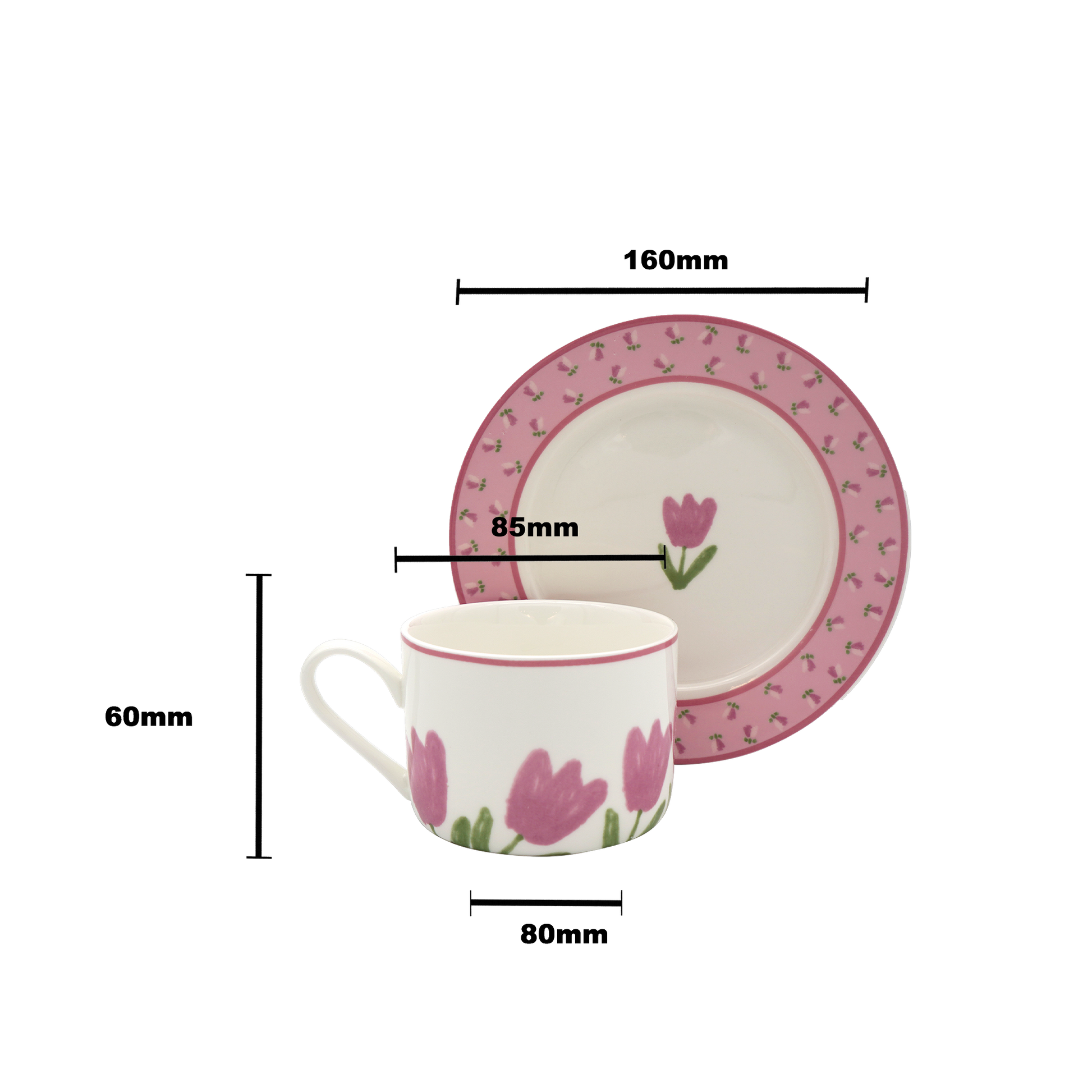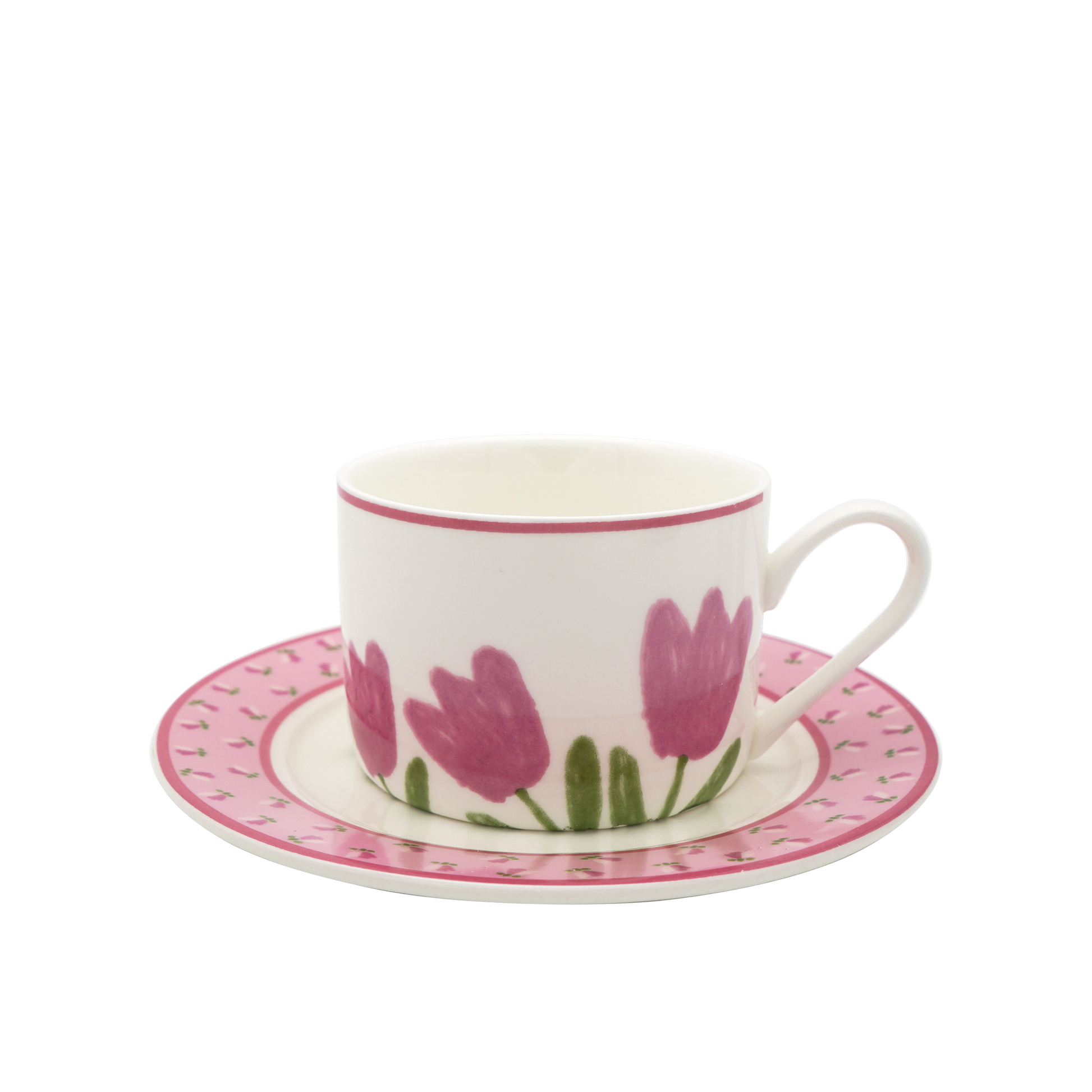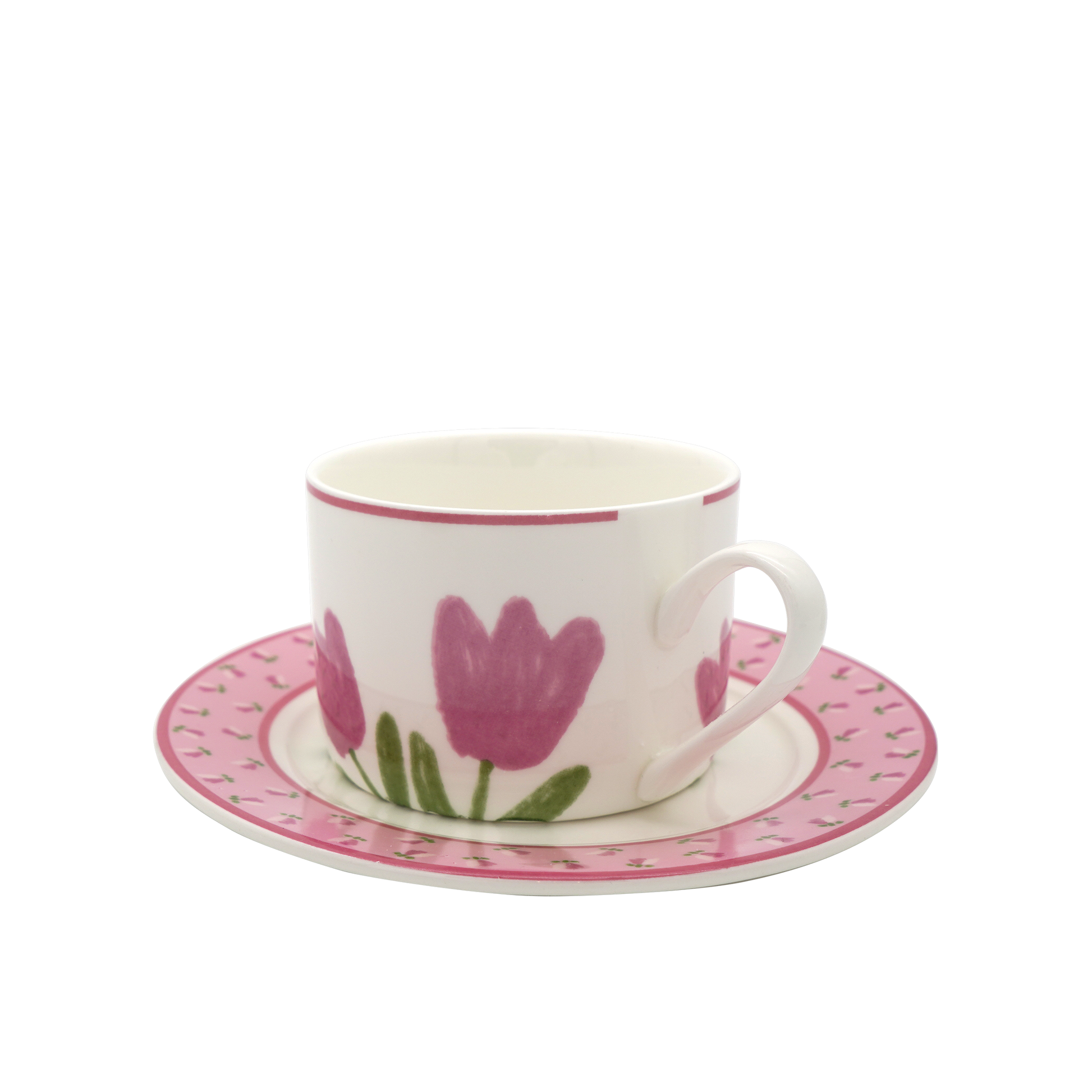 Crafted from high-quality ceramic, the Springs Springs Cup and Saucer featuring the handmade tulip floral design, is easy to captivate your guests.