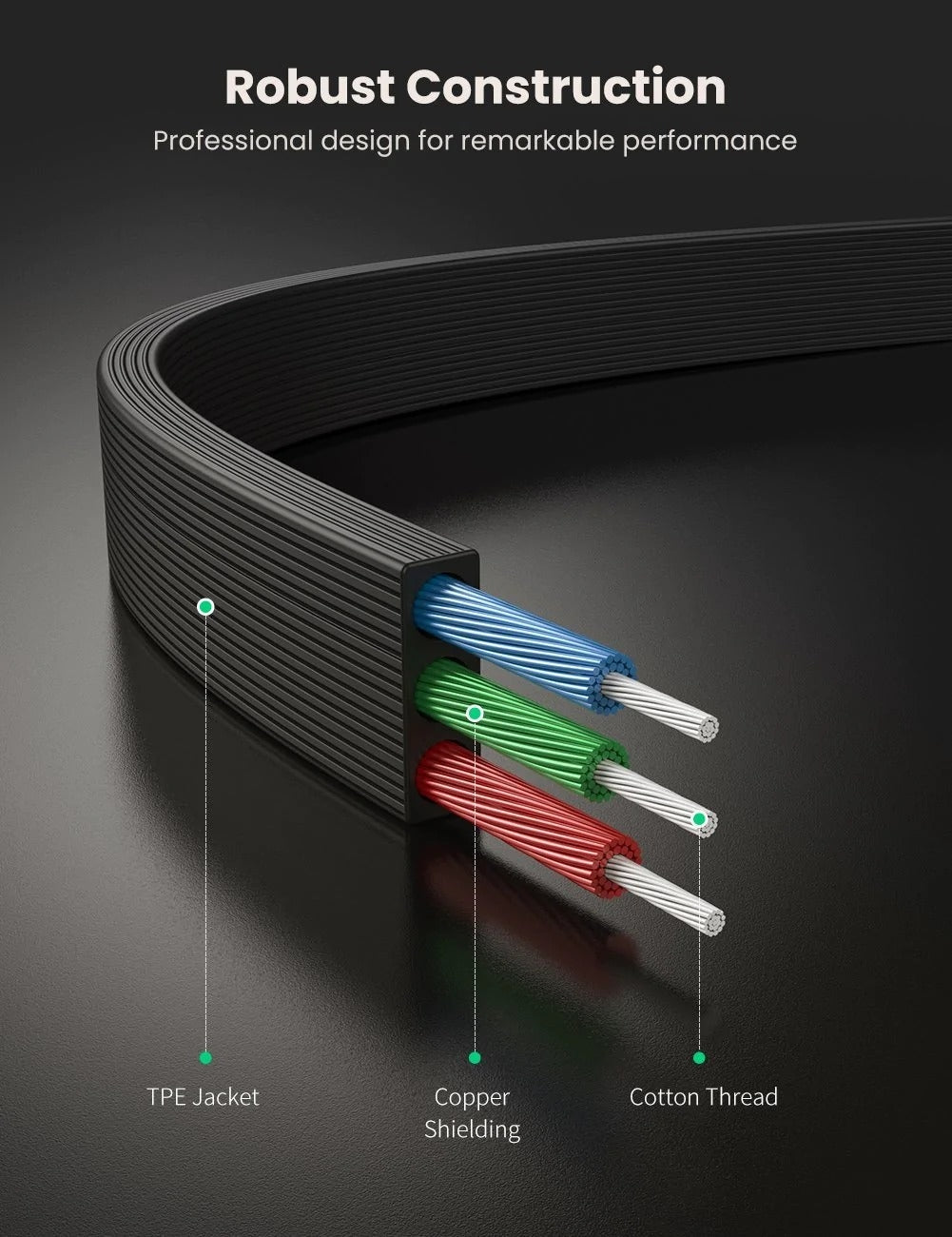3.5mm to 3.5mm flat cable is slim designed successfully to avoid the hassle of a tangle.