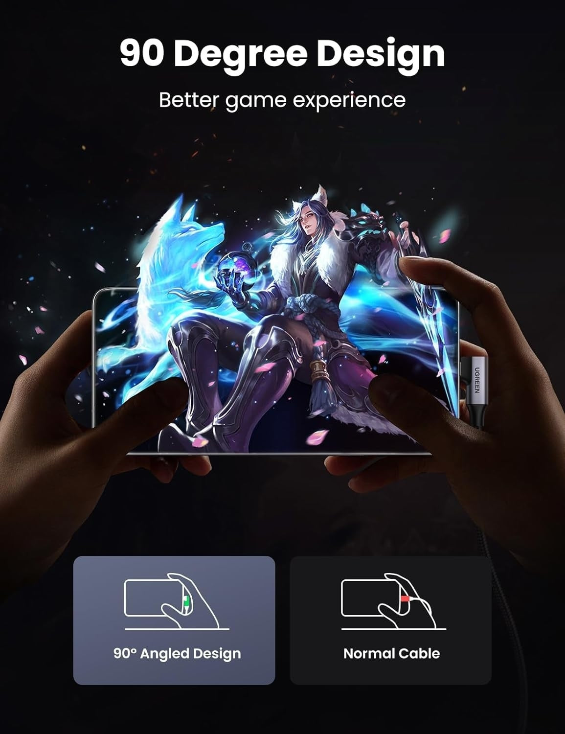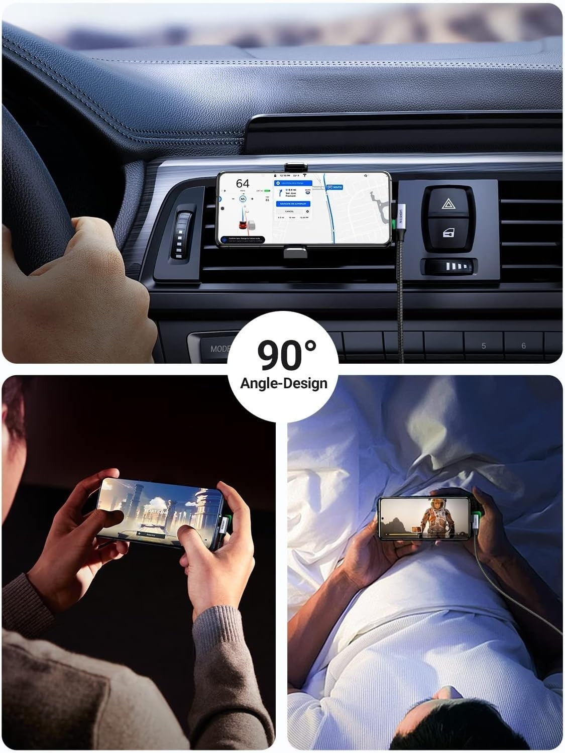 This USB A to USB C fast charging cable with an innovative 90 degrees " L " design. Reduce the use of bent cables, protect equipment interfaces, and extend service life. It is more convenient to play games and watch videos while charging.