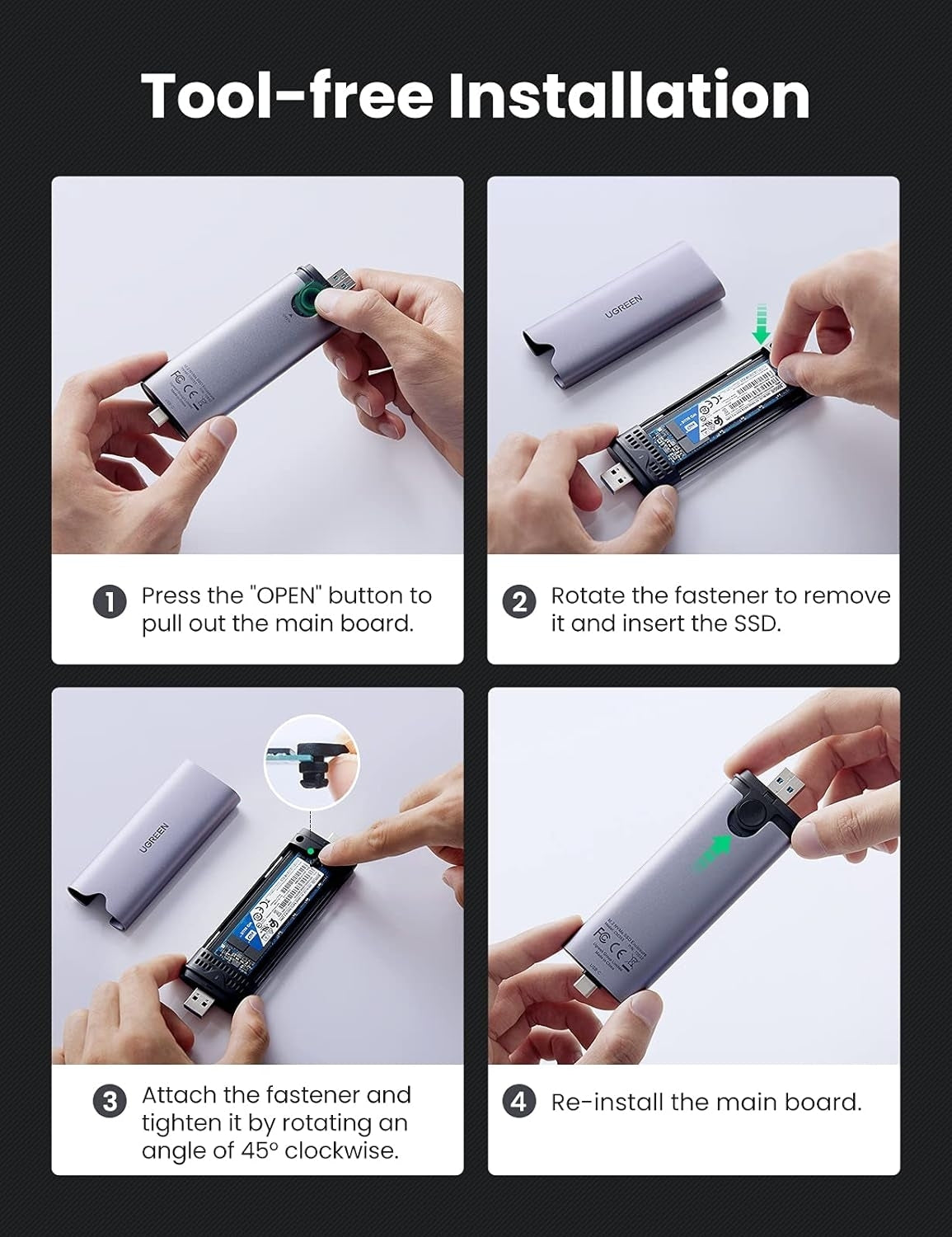 The 2 in 1 USB-C and USB-A ports design offers an easy way to connect M.2 to USB-C or USB-A device. UGREEN SSD enclosure fits M-Key & M+B Key NVME PCIE based SSD above 2TB. Note: Do not support B Key NVME, M and B&M Keys SATA.