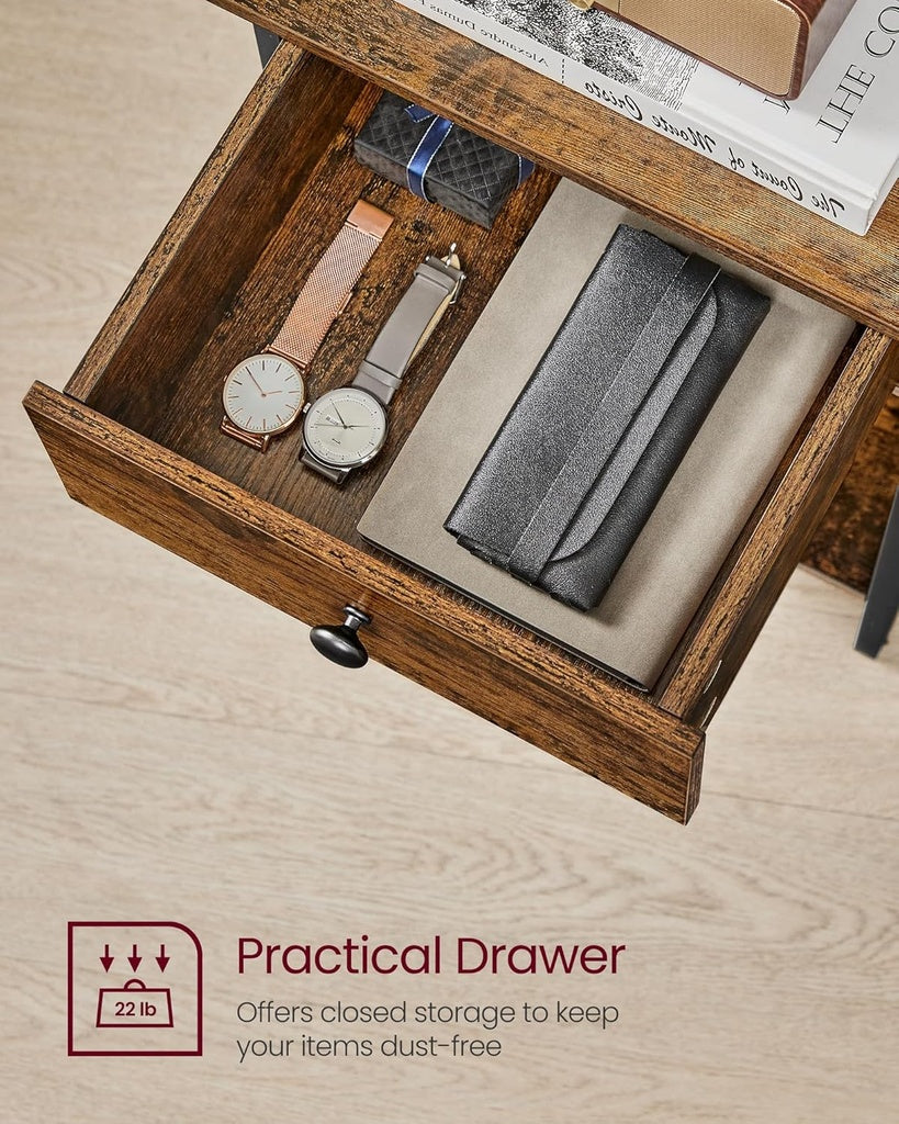 VASAGLE End Table with Drawer and Shelf Rustic Brown and Black