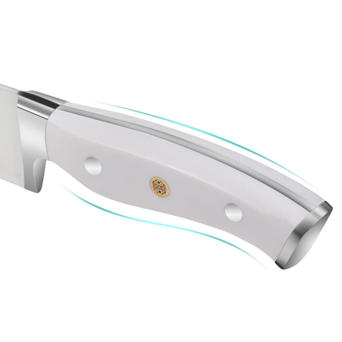Color: 3-Pcs White Handle Brand: warmot Blade Material: German 1.4116 Stainless Steel Blade Edge: Plain Style: Ergonomic 8-inch Chef knife × 1 5-inch Utility knife × 1