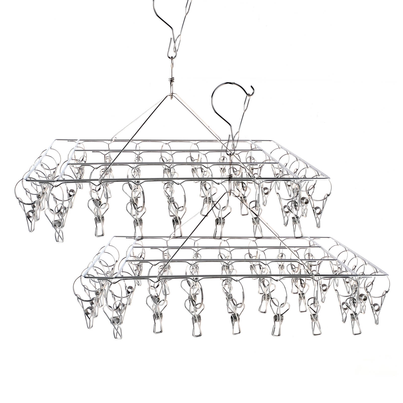 Xtra Kleen® Ideal for hanging and drying smaller laundry items, these compact stainless steel clothes hangers include 40 pegs each. Rust resistant and collapsible, use them indoors or outdoors as needed.